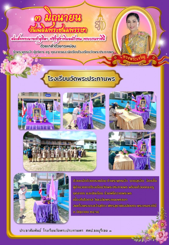 พิธีถวายพระพร เนื่องในโอกาส วันเฉลิมพระชนมพรรษา สมเด็จพระนางเจ้าสุทิดา พัชรสุธาพิมลลักษณ พระบรมราชินี ๓ มิถุนายน ๒๕๖๕